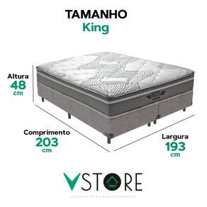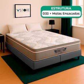 A tecnologia que a sua casa merece está na V-Store! O Conjunto Colchão Ibiza + Base Box Bravus Solteiro da V-Store é a escolha perfeita para quem busca conforto, durabilidade e elegância. O colchão, com Molas Ensacadas e espuma de alta performance, proporciona suporte ideal e conforto intermediário, além de ser protegido contra ácaros, fungos e alergias. A Base Box Bravus, fabricada em madeira reflorestada e revestida com tecido sintético, combina resistência, praticidade e um design sofisticado. Juntos, eles oferecem uma solução completa para transformar seu dormitório com qualidade e estilo. Característica Do Colchão: Modelo: IbizaMarca: V-StoreTamanho: KingDimensões: 193x22x203 (Largura x Altura x Comprimento)Conforto: intermediárioSistema: Molas EnsacadasPillow: Não se aplicaPeso Máximo recomendado: 150 kg (Por pessoa)Proteções: Antiácaro, antialérgico, antifungo, antimofoGarantia: 12 Meses (Espuma) / 10 anos ( Conjunto de Molas Ensacadas)Característica Da Base: Marca: V-StoreModelo: BravusTamanho: KingDimensões: 193x44x203 (Largura x Altura x Comprimento)Estrutura: MadeiraPeso máximo recomendado: 150 kg (Por Pessoa)Altura do Box: 26 cmAltura dos Pés: 6 cmAltura total: 44 cmGarantia: 12 Meses (Estrutura) / 3 meses (Tecido)Selo Ecologicamente CorretoAtenção:- Antes de finalizar sua compra, recomendamos que verifique se as dimensões do produto são adequadas para serem transportadas pelos elevadores, portas, escadas e corredores de sua residência. Ressaltamos que não nos responsabilizamos pelo transporte do produto por meios específicos, como escadas, guinchos ou içamentos.- É possível que hajam leves variações de cor de acordo com o dispositivo que está sendo utilizado como smartphones, computadores, monitores e outros.