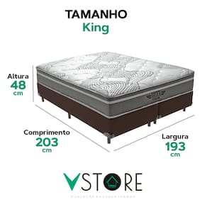 A tecnologia que a sua casa merece está na V-Store! O Conjunto Colchão Ibiza + Base Box Bravus Solteiro da V-Store é a escolha perfeita para quem busca conforto, durabilidade e elegância. O colchão, com Molas Ensacadas e espuma de alta performance, proporciona suporte ideal e conforto intermediário, além de ser protegido contra ácaros, fungos e alergias. A Base Box Bravus, fabricada em madeira reflorestada e revestida com tecido sintético, combina resistência, praticidade e um design sofisticado. Juntos, eles oferecem uma solução completa para transformar seu dormitório com qualidade e estilo. Característica Do Colchão: Modelo: IbizaMarca: V-StoreTamanho: KingDimensões: 193x22x203 (Largura x Altura x Comprimento)Conforto: intermediárioSistema: Molas EnsacadasPillow: Não se aplicaPeso Máximo recomendado: 150 kg (Por pessoa)Proteções: Antiácaro, antialérgico, antifungo, antimofoGarantia: 12 Meses (Espuma) / 10 anos ( Conjunto de Molas Ensacadas)Característica Da Base: Marca: V-StoreModelo: BravusTamanho: KingDimensões: 193x44x203 (Largura x Altura x Comprimento)Estrutura: MadeiraPeso máximo recomendado: 150 kg (Por Pessoa)Altura do Box: 26 cmAltura dos Pés: 6 cmAltura total: 44 cmGarantia: 12 Meses (Estrutura) / 3 meses (Tecido)Selo Ecologicamente CorretoAtenção:- Antes de finalizar sua compra, recomendamos que verifique se as dimensões do produto são adequadas para serem transportadas pelos elevadores, portas, escadas e corredores de sua residência. Ressaltamos que não nos responsabilizamos pelo transporte do produto por meios específicos, como escadas, guinchos ou içamentos.- É possível que hajam leves variações de cor de acordo com o dispositivo que está sendo utilizado como smartphones, computadores, monitores e outros.
