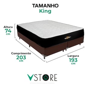A tecnologia que a sua casa merece está na V-Store! O Conjunto Colchão Orthopedic + Base Box Bravus da V-Store é a união perfeita de conforto e resistência. O colchão, com espuma D33 e suporte extra firme, garante alinhamento ideal e proteção contra ácaros, alergias e fungos. A base box, com estrutura de madeira reflorestada e acabamento em tecido sintético, oferece durabilidade e um design moderno para o seu dormitório.Característica Do Colchão: Modelo: OrthopedicMarca: V-StoreTamanho: KingDimensões: 193x30x203 (Largura x Altura x Comprimento)Conforto: Extra FirmeSistema: EspumaPillow: Não se aplicaPeso Máximo recomendado: 110 kg (Por pessoa)Proteções: Antiácaro, antialérgico, antifungo, antimofoGarantia: 12 Meses (Espuma)Característica Da Base: Marca: V-StoreModelo: BravusCor do Box: MarromTamanho: KingDimensões: 193x44x203 (Largura x Altura x Comprimento)Estrutura: MadeiraPeso máximo recomendado: 150 kg (Por Pessoa)Altura do Box: 26 cmAltura dos Pés: 6 cmAltura total: 44 cmGarantia: 12 Meses (Estrutura) / 3 meses (Tecido)Selo Ecologicamente CorretoAtenção:- Antes de finalizar sua compra, recomendamos que verifique se as dimensões do produto são adequadas para serem transportadas pelos elevadores, portas, escadas e corredores de sua residência. Ressaltamos que não nos responsabilizamos pelo transporte do produto por meios específicos, como escadas, guinchos ou içamentos.- É possível que hajam leves variações de cor de acordo com o dispositivo que está sendo utilizado como smartphones, computadores, monitores e outros.