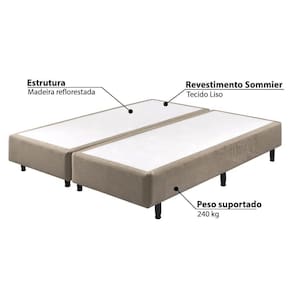 Características do Sommier - Bege - Estrutura: Madeira reflorestada - Revestimento: Tecido liso - 2 Sommiers - Pés de 15 cm cada na cor tabaco - Entregue montado