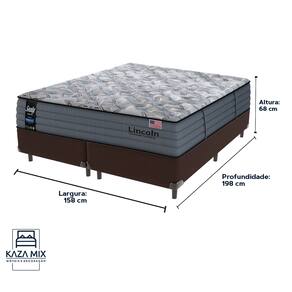 Bem-vindo(a) ao nosso catálogo! Apresentamos a você uma descrição completa sobre esse produto: A marca SealyEntre as personalidades que usam e usaram os colchões da marca Sealy estão a cantora Adele, Rainha Elizabeth II, a apresentadora Ellen DeGeneres e o jogador de basquete LeBron James. Atendendo também os hotéis da Disney, Copacabana Palace, Hard Rock Hotels e outros. Referência na fabricação de colchões de alta qualidade, a empresa foi fundada em 1881. Investindo em tecnologia de ponta e materiais premium para produzir produtos duráveis e confortáveis, é reconhecida por diversos consumidores famosos em todo o mundo. Modelo: LincolnNível de Conforto: MacioSuporte de peso: 300 quilos (150kg por pessoa)Molas: Molas Ensacadas DSS Espuma: Espuma Hipersoft GelAltura: 33 cm Tecido: Malha Margan 365 gO Colchão Lincoln Sealy é o ápice do conforto e sofisticação, criado para quem busca o melhor em qualidade de sono. Este colchão de 33 cm de altura é uma verdadeira obra-prima, combinando a renomada tecnologia de Molas Ensacadas DSS com o suporte adicional da tecnologia Posturepedic. Essa combinação oferece um alinhamento perfeito da coluna e alívio dos pontos de pressão, proporcionando uma experiência de sono revitalizante e tranquila. Com uma camada de espuma Hipersoft Gel, o Colchão Lincoln Sealy eleva o conforto a um novo patamar, garantindo uma sensação de maciez e ajudando a dissipar o calor, mantendo a temperatura ideal durante toda a noite. O tampo em Malha Margan, com 365 g/m², adiciona um toque de frescor e elegância, enquanto a lateral em Jacquard Plano reforça a durabilidade e o visual sofisticado. Além disso, o colchão é equipado com uma camada adicional de fibra siliconada e espuma Soft, com um reforço estratégico no terço central, garantindo suporte extra e conforto incomparável. As bordas firmes ampliam a área útil do colchão, evitando deformações e garantindo que cada centímetro seja aproveitado ao máximo. Com capacidade de suporte de até 150 kg por pessoa, o Colchão Lincoln Sealy não é apenas sinônimo de conforto, mas também de durabilidade e resistência. Eleve sua experiência de sono com este colchão, que combina tecnologia avançada, materiais de alta qualidade e um design elegante, transformando suas noites em momentos de descanso verdadeiramente restauradores. Além de tudo, esse produto acompanha a Cama Box da Kaza Mix e assim se torna um conjunto perfeito para o seu quarto! Marca: Kaza MixCor do Box: MarromTamanho: QueenMaterial dos pés: MadeiraEstrutura: MadeiraPeso máximo recomendado: Até 150kg de cada ladoLargura: 158cmComprimento: 198cmAltura dos pés: 12cmAltura total: 42cmGarantia: 03 mesesSelo Ecologicamente CorretoAtenção: - Antes de finalizar sua compra, recomendamos que verifique se as dimensões do produto são adequadas para serem transportadas pelos elevadores, portas, escadas e corredores de sua residência. Ressaltamos que não nos responsabilizamos pelo transporte do produto por meios específicos, como escadas, guinchos ou içamentos. - É possível que hajam leves variações de cor de acordo com o dispositivo que está sendo utilizado como smartphones, computadores, monitores e outros.