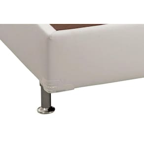 BENEFÍCIOS EXTERNO DA CAMA BOX Forração de Revestimento da Cama Box - Acabamento em Couríno Cor da Forração Revestimento Cama Box - Tampo Branco Altura da Cama Box com os Pés - 32 cm de altura Detalhes Gerais da Cama Box - Pés Fixos PVC Cromado