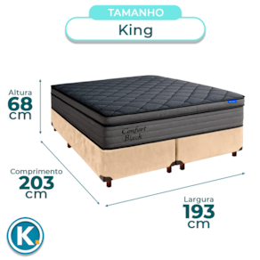 Conjunto King Colchão Confort Black + Cama Box PerolaO Colchão Confort Black Ortobom une tecnologia e conforto para um sono de qualidade. Conta com pillow top em espuma D28 selada, que garante maciez, resiliência e durabilidade. Sua estrutura interna em EPS de alta resistência oferece suporte firme e estável, mantendo a ergonomia ideal. Base Box King Universal em VeludoMedidas Queen: 158x198cm, ideal para colchões maiores e mais espaçososEstrutura reforçada com suporte de até 150kg, garantindo segurança e durabilidadeFicha Técnica Colchão:Modelo: Confort BlackMarca: OrtobomTamanho: KingDensidade: D28Conforto: FirmeTecido: PoliésterLargura: 193cmComprimento: 203cmAltura: 30cmSuporte de Peso: 120KgGarantia: 3 MesesFicha Técnica Cama Box:Modelo: UniversalMarca: NatureTamanho: KingTecido: VeludoLargura: 193cmComprimento: 203cmAltura: 25cmAltura dos Pés: 13cmMaterial dos Pés: MadeiraSuporte de Peso: 150KgPeso: 40KgGarantia: 3 MesesAtenção:Antes da compra certifique-se de que o produto passa por elevadores, portas e corredores.As transportadoras não realizam entregas por escadas ou içamentos.Caso o item não caiba no elevador, a entrega será considerada concluída no térreo do prédio.A cor e tonalidade do produto pode variar de acordo com o dispositivo que o usuário está acessando.