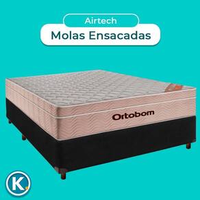 Cama Box Preto Casal + Colchão Molas Ensacadas Airtech Ortobom Conjunto Casal Colchão Airtech + Cama Box Colchão Ortobom Casal com 25cm de altura, ideal para conforto no uso diário