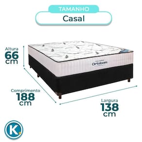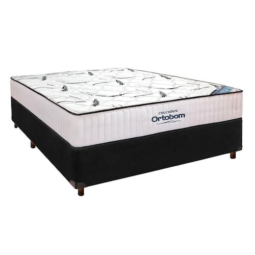 Cama Box Preto + Colchão Casal High Foam Ortobom Conjunto Queen Colchão Bogota + Cama Box Bau Preto + Cabeceira O Colchão High Foam Espuma HR D33 Ortobom é desenvolvido com tecido de malha de poliéster de eucalipto, tratado com aloe vera, óleo de jojoba e E proporcionando um toque macio, refrescante e um verdadeiro tratamento de beleza enquanto você dorme.