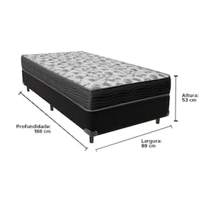 Marca: KazaMix Modelo: Box Cor do Box: Preto Tamanho: Solteiro Dimensões: 88X188X35 (Largura x Comprimento x Altura) Estrutura: Madeira Peso máximo recomendado: 150 kg (Por Pessoa) Altura do Box: 25 cm Altura dos Pés: 10 cm Altura total: 35 cm Garantia: 03 meses Selo Ecologicamente Correto
