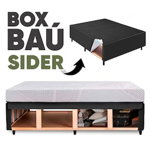 Cama Box Queen Baú Base Sider + 2 Travesseiros c/ Espaço Interno Amplo 158x198cm na cor Preto – Orthocamas