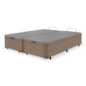 Cama Box QUEEN Bipartido Baú Canvas Palha - 158x198 - Branco