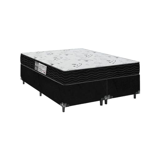 Cama Box Queen Bipartido + Colchão D33 One Face - Suede Preto - e-Shop Casa