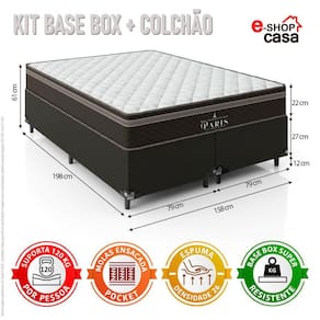 Cama Box Queen Bipartido + Colchão Paris Molas Ensacadas - e-Shop Casa