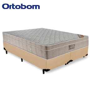 Cama Box Queen Bipartido Sintético + Colchão Ortobom Airtech Molas Ensacadas 65x158x198 Cor:bege