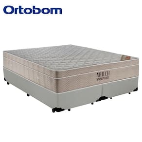 Cama Box Queen Bipartido Sintético + Colchão Ortobom Airtech Molas Ensacadas 65x158x198 Cor:branco