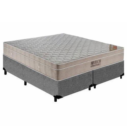 Cama Box Queen Bipartido Suede + Colchão Ortobom Airtech Molas Ensacadas 158x198x65 Cinza