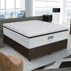 Cama Box Queen Colchão De Molas Ensacadas Tower Gazin 158x198x72cm Branco / Marrom Branco / Marrom