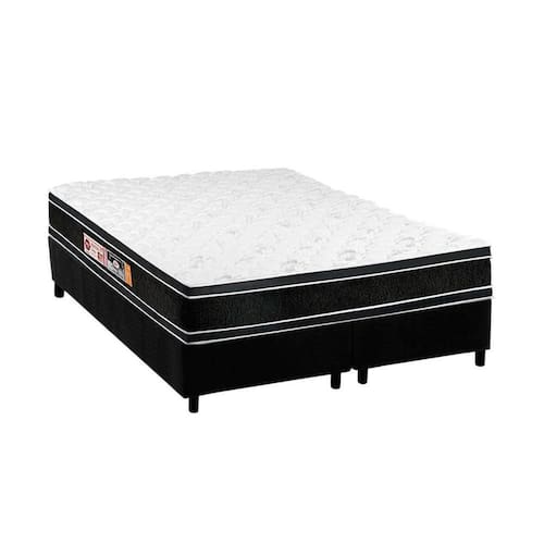 Cama Box Queen: Colchão Espuma Castor D33 Black E White Double Face + Base Crc Suede Black(158x198)
