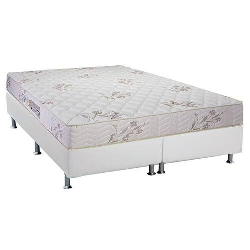 Conjunto Box Queen: Colchão Espuma Luckspuma D45 Gran Luck Floral Pró Saúde + Base CRC Courano White(158x198)