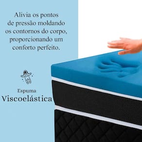 O colchão tem um nivel de conforto intermediário - macio, que garante a sustentação ideal da coluna. A maciez vem do pillow top confeccionado em espuma viscoelástica ( a famosa espuma da Nasa), alivia os pontos de pressão moldando os contornos do corpo, proporcionando um conforto perfeito e um sono reparador.