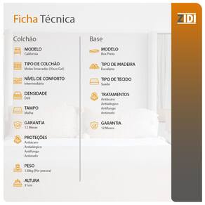 O box é produzido com madeira de Eucalipto para garantir uma estrutura firme e resistente. O acabamento com Suede te dão um toque sofisticado e moderno ao sommier, facilitando também a limpeza do mesmo. Para proporcionar ainda mais estabilidade, os pés são em plástico.