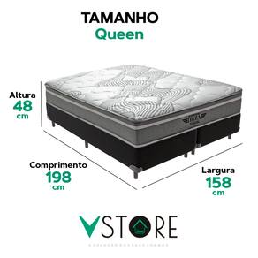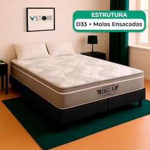A tecnologia que a sua casa merece está na V-Store! O Conjunto Colchão Ibiza + Base Box Bravus Solteiro da V-Store é a escolha perfeita para quem busca conforto, durabilidade e elegância. O colchão, com Molas Ensacadas e espuma de alta performance, proporciona suporte ideal e conforto intermediário, além de ser protegido contra ácaros, fungos e alergias. A Base Box Bravus, fabricada em madeira reflorestada e revestida com tecido sintético, combina resistência, praticidade e um design sofisticado. Juntos, eles oferecem uma solução completa para transformar seu dormitório com qualidade e estilo. Característica Do Colchão: Modelo: IbizaMarca: V-StoreTamanho: QueenDimensões: 158x22x198 (Largura x Altura x Comprimento)Conforto: intermediárioSistema: Molas EnsacadasPillow: Não se aplicaPeso Máximo recomendado: 150 kg (Por pessoa)Proteções: Antiácaro, antialérgico, antifungo, antimofoGarantia: 12 Meses (Espuma) / 10 anos ( Conjunto de Molas Ensacadas)Característica Da Base: Marca: V-StoreModelo: BravusCor do Box: PretoTamanho: QueenDimensões: 158x44x198 (Largura x Altura x Comprimento)Estrutura: MadeiraPeso máximo recomendado: 150 kg (Por Pessoa)Altura do Box: 26 cmAltura dos Pés: 6 cmAltura total: 44 cmGarantia: 12 Meses (Estrutura) / 3 meses (Tecido)Selo Ecologicamente CorretoAtenção:- Antes de finalizar sua compra, recomendamos que verifique se as dimensões do produto são adequadas para serem transportadas pelos elevadores, portas, escadas e corredores de sua residência. Ressaltamos que não nos responsabilizamos pelo transporte do produto por meios específicos, como escadas, guinchos ou içamentos.- É possível que hajam leves variações de cor de acordo com o dispositivo que está sendo utilizado como smartphones, computadores, monitores e outros.