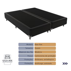 Bem-vindo(a) ao nosso catálogo! Apresentamos a você uma descrição completa sobre esse produto:O colchão Elegant com sua estrutura de molas ensacadas e espuma D26 de alta densidade, ele oferece suporte adequado para pessoas de até 150kg, tendo como garantia de máximo conforto o Pillow Euro. Uma camada a mais de aconchego!Colchão:Modelo: Elegant;Tamanho: Queen;Dimensões: 158x198x18cm; (largura x comprimento x altura)Conforto: Molas Ensacadas Espuma D26, Pillow Euro;Proteções: Antiácaro, antialérgico, antifungo, antimofo;Possui: Sistema No Turn, Fibra de bambu;Peso máximo recomendado: até 150Kg (por pessoa);Garantia: 03 meses; O sistema No Turn do Colchão Elegant torna sua manutenção muito mais prática e fácil, pois ele não precisa ser virado regularmente como os modelos tradicionais. Também é um produto sustentável. A fibra de bambu utilizada em sua composição é uma fonte renovável e amiga do meio ambiente.Qualidade Ortobom:O Elegant é produzido pela renomada marca Ortobom, conhecida por sua expertise em tecnologia do sono. Com anos de experiência no mercado, a Ortobom é reconhecida por oferecer produtos inovadores e de alta qualidade, que atendem às necessidades dos clientes mais exigentes.Base Box:Marca: KazaMix;Cor do Box: Preto;Revestimento da Cama: Material Sintético;Material dos pés: Madeira;Estrutura: Madeira;Peso máximo recomendado: até 150kg de cada lado;Altura do Baú: 25cm;Altura dos pés: 10cm;Altura total: 35cm;Garantia: 03 meses;Selo Ecologicamente Correto.Invista no seu sono e experimente o conforto e a qualidade!Atenção: Antes de finalizar sua compra, certifique-se de que as dimensões do produto sejam adequadas para serem transportadas pelos elevadores, portas, escadas e corredores de sua residência. Ressaltamos que não nos responsabilizamos pelo transporte do produto por meios específicos, como escadas, guinchos ou içamentos.