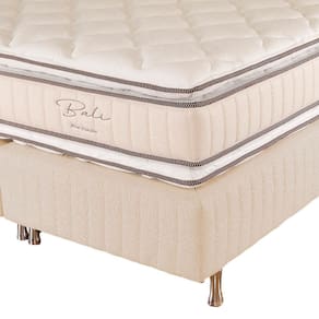 Procurando por um colchão novo pra dormir com tranquilidade e aconchego? A Cama Box Queen Prorelax Bali vai lhe proporcionar noites de sono com muito conforto e qualidade. Estrutura do colchão em molas ensacadas, espuma D-33, e Pillow Top, materiais de alto padrão que garantem um descanso saudável, planejados para que você aproveite ao máximo seu sono. Além disso o Conjunto Prorelax Bali (Box + Colchão) possui tratamento antimofo, antifungos, antiácaros e antialérgico, capacidade para suportar até 120 Kg por pessoa, base box em madeira de eucalipto tratada, revestimento em jacquard bordado, que juntos garantem proteção, durabilidade e robustez.