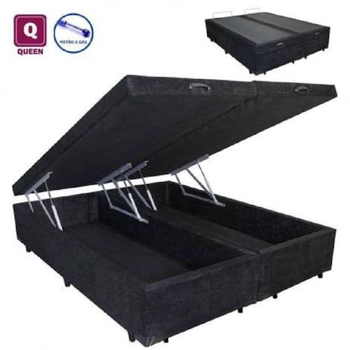 Cama Box QUEEN SIZE com Bau Pistão a gás preto suede Bipartido - 158x198x27 A Cama Box Queen Baú é perfeita para todas as pessoas precisam de uma cama grande e espaçosa mas sofrem com o problema da cama não passar na porta: Esse problema foi resolvido com a nova cama Bi-partida Queen. Funciona da seguinte maneira: E cama com dimensões de 158x198x27cm é composta de duas camas com dimensões 79x198x27cm e assim as duas partes são conectadas. Desse modo, torna-se muito mais fácil mover a cama e passar por áreas pequenas como portas, corredores e escadas. Assim que for colocada em seu lugar definitivo, por meio de uma junção elas são conectadas e formam assim uma só cama casal nas dimensões King (158x198x27cm). Cama Box QUEEN SIZE com Bau Pistão a gás preto suede Bipartido - 158x198x27 Uma outra grande vantagem dessa cama, permitindo que a roupa de cama, travesseiros, e diversos outros objetos possam ser guardados dentro da cama! Além de resistente e espaçosa, a Cama Box, ainda é prática, sendo assim muito simples e fácil utilizar, pode-se verificar pelas imagens como é simples utilizar o Baú da Cama Box. Material de alta qualidade que garante maior durabilidade e resistência ao produto. Comprimento: 198 cm Largura:158 cm Altura: 27 cm Profundidade do Bau: 27 cm