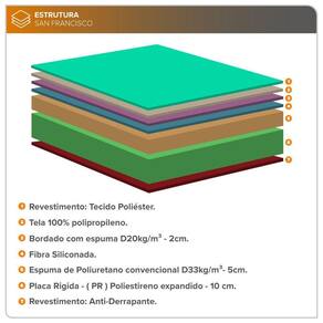 Atraves da utilizacao das espumas mais avancadas do mercado, o colchao San Francisco oferece um nivel de conforto excepcional. Em comparacao aos colchoes de molas, os modelos de espuma se destacam por sua firmeza, resultando em um sono profundamente revigorante para nossos clientes.