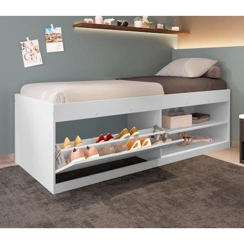 A Cama Box Sapateira é o móvel ideal para completar seu quarto aproveitando o espaço disponível de forma mais eficiente.
