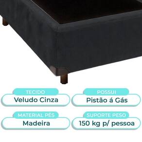 Cama Box Solteirão Cinza Nature 96x203 Base box solteirão ideal para otimizar o espaço do quarto com praticidade Revestimento em Veludo: fácil de limpar e com visual moderno