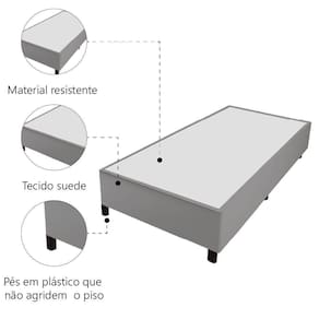 Cama Box Solteiro 0,88m Com 38cm De Altura Suede Prince Cinza Cinza O Box é um excelente produto para você que busca um produto moderno e prático. Possui estrutura resistente, um belo acabamento e um produto de fácil limpeza. Todo produzido com um material firme, como Eucalipto e Pinus. Proporciona para o seu quarto melhor aproveitamento de espaço e um design moderno. Deixará o seu quarto mais belo e prático. Acompanha jogo de pés em PVC. MEDIDAS: [ A ] = 38 cm / 26 cm (sem pés) [ L ] = 88 cm [ P ] = 188 cm ALTURA DOS PÉS: 12 cm PESO: 20kg SUPORTA ATÉ: 150kg MARCA: Prince MODELO: Box Solteiro 0,88m COR: Cinza TECIDO: Suede PÉS: 6 MATERIAL DOS PÉS: Plástico GARANTIA: 03 meses ITENS INCLUSOS: 1 Box de 0,88m A Esplanada Móveis se responsabiliza pela entrega dos produtos adquiridos até a porta de entrada ou portaria do endereço indicado, se a portaria do condomínio permitir, as entregas são efetuadas no piso térreo e é de responsabilidade do cliente a locomoção da mercadoria até seu apartamento ou casa. Confira as dimensões do produto e certifique-se de que estão adequadas aos elevadores, portas e corredores do local da entrega. Não fazemos a montagem, desmontagem do produto e/ou portas e janelas, transporte pela escada ou içamento pelo lado de fora do prédio. Não está incluso no serviço de entrega o deslocamento até o interior do apartamento, com ou sem elevador, ou deslocamento em locais de difícil acesso como escadarias. Caso o cliente necessite de entrega dentro das dificuldades mencionadas, deverá entrar em contato para análise e cotação do valor do serviço. Certifique-se de tudo antes de finalizar a compra, evitando assim futuros desagrados ou imprevistos com a entrega. MEDIDAS:: [ A ] = 38 cm / 26 cm (sem pés) [ L ] = 88 cm [ P ] = 188 cm | ALTURA DOS PÉS:: 12 cm | PESO:: 20kg | SUPORTA ATÉ:: 150kg | MARCA:: Prince | MODELO:: Box Solteiro 0,88m | COR:: Cinza | TECIDO:: Suede | PÉS:: 6 | MATERIAL DOS PÉS:: Plástico | GARANTIA:: 03 MESES | ITENS INCLUSOS:: 1 Box de 0,88cm | AVISO:: A Esplanada Móveis se responsabiliza pela entrega dos produtos adquiridos até a porta de entrada ou portaria do endereço indicado, se a portaria do condomínio permitir, as entregas são efetuadas no piso térreo e é de responsabilidade do cliente | TAMANHO: Soteiro Cor: Cinza