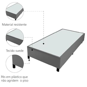 O Box é um excelente produto para você que busca um produto moderno e prático. Possui estrutura resistente, um belo acabamento e um produto de fácil limpeza. Todo produzido com um material firme, como Eucalipto e Pinus. Proporciona para o seu quarto melhor aproveitamento de espaço e um design moderno. Deixará o seu quarto mais belo e prático. Acompanha jogo de pés em PVC. MEDIDAS: [ A ] = 38 cm / 26 cm (sem pés) [ L ] = 88 cm [ P ] = 188 cm ALTURA DOS PÉS: 12 cm PESO: 20kg SUPORTA ATÉ: 150kg MARCA: Prince MODELO: Box Solteiro 0,88m COR: Cinza TECIDO: Suede PÉS: 6 MATERIAL DOS PÉS: Plástico GARANTIA: 03 meses ITENS INCLUSOS: 1 Box de 0,88m A Esplanada Móveis se responsabiliza pela entrega dos produtos adquiridos até a porta de entrada ou portaria do endereço indicado, se a portaria do condomínio permitir, as entregas são efetuadas no piso térreo e é de responsabilidade do cliente a locomoção da mercadoria até seu apartamento ou casa. Confira as dimensões do produto e certifique-se de que estão adequadas aos elevadores, portas e corredores do local da entrega. Não fazemos a montagem, desmontagem do produto e/ou portas e janelas, transporte pela escada ou içamento pelo lado de fora do prédio. Não está incluso no serviço de entrega o deslocamento até o interior do apartamento, com ou sem elevador, ou deslocamento em locais de difícil acesso como escadarias. Caso o cliente necessite de entrega dentro das dificuldades mencionadas, deverá entrar em contato para análise e cotação do valor do serviço. Certifique-se de tudo antes de finalizar a compra, evitando assim futuros desagrados ou imprevistos com a entrega.