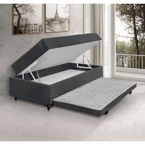 O Colchão Box Magnífico Teen 3 em 1, com Box Baú e Cama auxiliar, é um produto muito versátil. Cama com baú para guardar seus pertences e mais uma cama auxiliar com espuma convencional D-28. Possui molejo Superlastics System High Power Technology, aço com alto teor de carbono e com borda de aço em 0,4cm. Suas noites de sono serão muito mais relaxantes com esse incrível colchão!
