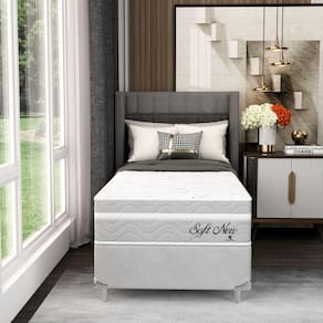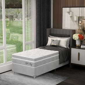 Colchão com Estrutura interna composta de molas ensacadas individualmente, Espuma poliuretano densidade 28kg/m3, EPS - Poliestireno Expandido, feltro resinado e TNT 100g. Faixa lateral no tecido Suede e tampo na malha 180g, fundo do produto TNT 100g. Cor da faixa lateral Cinza, Tampo branco com estampa e fundo preto. Box com madeira pinus e eucalipito, revestido com tecido Suede cor cinza na faixa lateral, TNT 70g preto na parte de cima e na parte de baixo. Informações Complementares: Colchão com malha 180g e estampa floral, esta malha além de ter um toque macio e agradável, proporciona maior conforto e possui grande segurança contra eventuais desfiações. Sua estrutura é composta por espuma poliuretano densidade 28kg/m2 que dá mais con