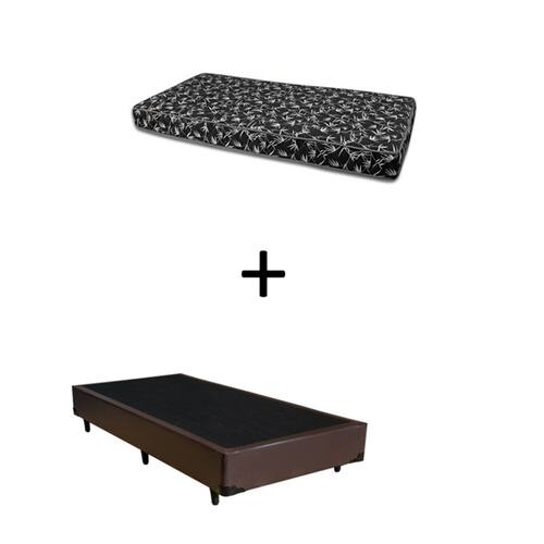 Cama Box Solteiro 88 Tecido Sintético Marrom Com Colchão New York Preto D28 - 100% Espuma - 54x88x188