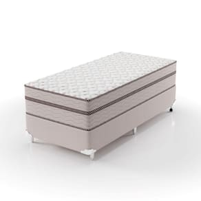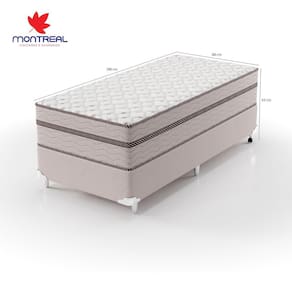 Colchão com Estrutura interna composta de molas ensacadas individualmente, Espuma puliuretano densidade 28kg/m3, EPS - Poliestireno Expandido, feltro resinado e TNT 100g. Faixa lateral e tampo no no tecido sintel, fundo do produto TNT 100g. Cor da faixa lateral Bege, Tampo bege e fundo preto. Box com madeira pinus e eucalipito, revestido com tecido Sintel cor bege na faixa lateral, TNT 70g preto na parte de cima e na parte de baixo. Abertura para Ventilação: Não Acompanha Cama Auxiliar: Não Acompanha Colchão: Sim Altura da Base Box (Sem o Colchão): 25 cm Altura do Colchão (Sem a Base Box): 26 cm Ambiente Principal: Quarto Antiácaro: Sim Antialérgico: Sim Antifungo: Sim Cantoneiras: Sim Cor: Bege Cor do Produto: Bege Informações Complementares: Colchão com tecido 100% poliéster, design inovador e estampa floral, é um tecido mais resistente aos desgastes do dia a dia, pois não fura ou desfia com facilidade. Sua estrutura é composta por espuma poliuretano densidade 28kg/m2 que dá mais conforto par Itens Inclusos: 1 Box e 1 Colchão Linha ou Coleção: Linha Manual de Montagem e Instalação: https://cdn2.madeiramadeira.com.br/atributo/m-veis-montreal/783782-7898631956420.pdf Material da Estrutura: Eucalipto Material dos Pés: Plástico Necessita Montagem: Não Nível de Conforto: Intermediário Origem do Produto: Nacional Permite a Utilização de Cama Auxiliar: Não Peso: 29,22 kg Pillow: Pillow Euro Possui Baú: Não Possui Pillow: Sim Precisa virar: Sim Recomendações de Uso, Manutenção e Limpeza: Seguir o manual de instruções Revestimento: Poliéster Revestimento da Base Box: Tecido poliester, TNT Antiderrapante Tamanho: Solteiro Tamanho de Colchão: Solteiro Tipo do Colchão: Mola
