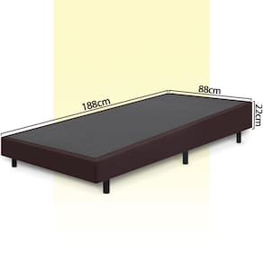 Características: - Cama box anti refluxo - Tamanho: Solteiro - Medidas: 22 x 88 x 188 cm (altura X largura X comprimento) - Marca: BF Colchões - Estrutura: Madeira de reflorestamento - Revestimento lateral: Courano - Revestimento superior: Tecido antiderrapante - Pés em Madeira de eucalipto