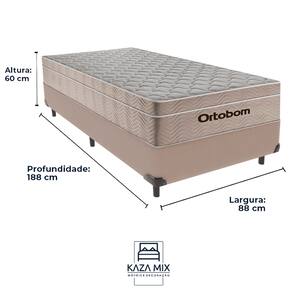 Bem-vindo(a) ao nosso catálogo!Apresentamos a você uma descrição completa sobre esse produto:O Colchão Airtech da Ortobom é a escolha perfeita para você que busca conforto para noites de sono!Produzido com Molas Ensacadas, ele garante a sustentação ideal para a sua coluna enquanto proporciona um conforto Macio.Seu acabamento com Euro Pillow garante um toque macio e noites revigorantes.A Base Box da KazaMix garante conforto e qualidade. A madeira utilizada na produção da Base Box é proveniente de reflorestamentos, o que garante uma matéria-prima renovável e sustentável. Além disso, a base box é revestida com um tecido de alta qualidade, que proporciona um toque suave e agradável.FICHA TÉCNICA DO COLCHÃOModelo: AirtechMarca: OrtobomTamanho: SolteiroDimensões: 88x188x25 (Largura x Comprimento x Altura)Conforto: MacioSistema: Molas EnsacadasPillow: Euro PillowPeso Máximo recomendado: 120 kg (Por pessoa)Proteções: Antiácaro, antialérgico, antifungo, antimofoGarantia: 12 Meses pelo fabricanteFICHA TÉCNICA DA BASEModelo: BoxMarca: KazaMixCor: BegeTamanho: SolteiroDimensões: 88x188x37 (Largura x Comprimento x Altura)Altura dos pés: 5Altura Total: 37Peso Máximo recomendado: 150 kg (Por pessoa)Proteções: Antiácaro, antialérgico, antifungo, antimofoGarantia: 3 Meses pelo fabricanteAtenção: Certifique-se de que o produto passa por elevadores, portas, escadas e corredores, pois não realizamos içamentos ou transporte especial. Não fazemos montagem ou desmontagem de produtos. As cores podem sofrer uma pequena alteração de acordo com a tela. Marca: Não Informado