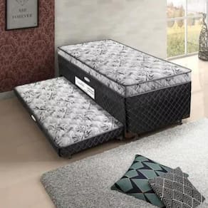 Com o Conjugado Bibox Carol voce podera armazenar travesseiros ou cobertas em seu bau, assim voce economiza espaco no quarto com muita facilidade, basta levantar o box. Alem disso, o produto tem uma peca coringa que e a cama auxiliar que pode ser utilizado quando precisar podendo acomodar mais uma pessoa.