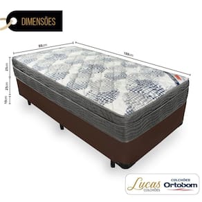 Especificações Técnicas Colchão: - Marca: Ortobom; - Tipo de Mola: SuperPocket (Ensacadas); - Proteções: Antiácaro - Antialérgico - Antifungo - Antimofo; - Acabamento: Bordado em Matelassê; - Matéria prima: Mola Ensacada / Espuma / Tecido; - EPS Poliestireno Expansível: Possui; - Tipo de conforto: Médio; - Peso máximo recomendado: até 150 Kg (por pessoa); - Garantia: 12 meses; - Dimensões do produto (largura x comprimento x altura) 88x188x25cm;