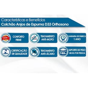 Colchão Solteiro Espuma D33 Orthosono Double Face (88x188x20) - Anjos
