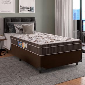 REVESTIMENTO SUPERIOR: Bordado com Malha 100% poliéster REVESTIMENTO LATERAL: Bordado 100% poliéster REVESTIMENTO INTERIOR: Espuma D28 com EPS GRAMATURA: 68 g/m PESO: 34kg PESO SUPORTADO: 120kg ITENS INCLUSOS: 1 Colchão de 0,88m e 1 Box de 0,88m GARANTIA: Colchão: 12 Meses / Box: 3 meses DIFERENCIAL: Os colchões são produzidos com espuma de alta qualidade, com acabamento bordado e revestidos com o tecido poliéster, proporcionando um excelente sono.