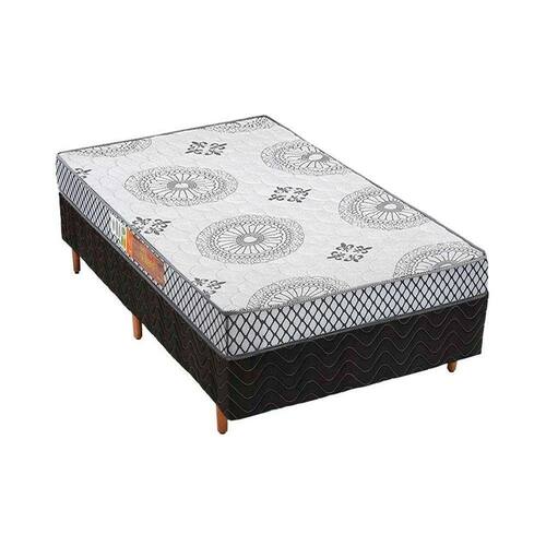 Cama Box Solteiro: Colchão Espuma Pérola + Base Crc Suede Black(88x188)
