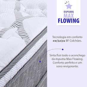- Espuma Max Flowing: Tecnologia em conforto exclusiva BF Colchões, sinta fluir todo aconchego da espuma Max Flowing. Conforto perfeito e um sono revigorante.