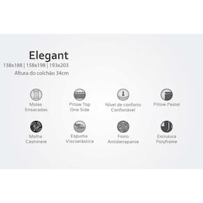 Dimensões(Cm): Comprimento(Profundidade): 188cm x Largura: 88cm x Altura: 34cm Vantagens Extras de Colchão - Ecologicamente Correto - c/ Sistema Polyframe Tipo de Pillow - Pillow Top Americano Tecido com Tratamento - AntiÁcaro e AntiFungo Tipo de Bordado do Tecido de Revestimento - Localizado Tipo Tecido de Forração Revestimento - Cashemere Tipo de Forração do Revestimento Inferior - Antiderrapante Tipo de Tecido de Revestimento da Faixa Lateral - Malha Cor do Tecido de Revestimento da Faixa Lateral - Clara Cor do Tecido do Tampo - Claro Modo de Utilização - One Side Camadas Interna do Estofamento de Espuma - D20 - D28 - D45 Tipo de Mola - Ensacadas MasterPocket Nível de Firmeza do Colchão - Macio c/ Firmeza Peso Máximo Suportado - 110 kg Certificação de Qualidade - Qualidade Aprovada - Qualidade Costa Rica - ISO 9001 Nossa Avaliação - Qualidade Excelente Tempo de Garantia - 12 meses
