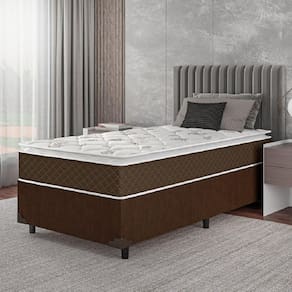 MODELO: Cama Box Solteiro Martino MARCA: Umaflex COR: Marrom/Branco REVESTIMENTO TECIDO SUPERIOR COLCHÃO: Tecido Malha REVESTIMENTO TECIDO LATERAL COLCHÃO: Lateral bordada, tecido poliéster, tecido 100% sintético. Por ser sintético não é propenso ao acúmulo de poeira e materiais orgânicos, além de ser de fácil higienização. REVESTIMENTO INTERIOR COLCHÃO: Molas ensacadas aliada com espuma de qualidade e poliestireno expandido que faz com que o colchão suporte até 120kg por pessoa PILLOW/EURO: Pillow Top TECIDO BOX: Suede veludo PÉS: 6 ALTURA DOS PÉS: 12 cm PESO SUPORTADO: 120kg por pessoa PESO: 43,3kg ITENS INCLUSOS: 1 Colchão de 0,88m e 1 box de 0,88m INSTRUÇÕES / CUIDADOS: Utilizar em local seco com passagem de ar, não dobrar, fazer giro quinzenalmente no sentido pés/cabeceira. GARANTIA COLCHÃO: 12 Meses pelo Fabricante GARANTIA BOX: 3 meses pelo fabricante