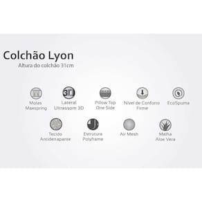 Dimensões(Cm): Comprimento(Profundidade): 88cm x Largura: 188cm x Altura: 28cm Tipo de Pillow - Pillow Top Europeu Tipo de Bordado do Tecido de Revestimento - Localizado Tipo Tecido de Forração Revestimento - Aloe Vera Cor do Tecido do Tampo - Claro Tipo de Tecido de Revestimento da Faixa Lateral - Bordado Ultrassom Cor do Tecido de Revestimento da Faixa Lateral - Clara Tecido com Tratamento - Aloe Vera - AntiÁcaro e AntiFungo Modo de Utilização - One Side Tipo de Forração do Revestimento Inferior - Antiderrapante Sistema de molas - Maxspring Tipo de Estrutura do Bloco de Espuma - HR de Alta Resiliência Outras Características Internas - Espuma de Poliol Vegetal - c/ Sistema Polyframe Peso Máximo Suportado - 120 kg Tipo de Conforto - Firme Certificados de Qualidade - Qualidade Aprovada - ISO 9001 - Selo Abicol - INMETRO Vantagens Extras do Colchões de Molas Maxspring - Ecologicamente Correto Nossa Avaliação - Qualidade Muito Boa Tempo de Garantia - 12 meses