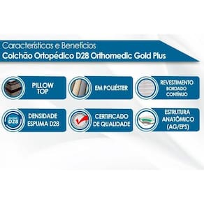 Dimensões(Cm): Comnto(Profundidade): 188cm x Largura: 88cm x Altura: 30cm Tipo de Colchão - Anatômico Tipo de Pillow - Pillow Top Americano Tecido com Tratamento do Colchão - AntiÁcaro e AntiFungo Bordado do Revestimento do Colchão - Matelassê Forração do Revestimento Inferior do Colchão - Antiderrapante Tecido de Revestimento da Faixa Lateral do Colchão - Poliéster Modo de Utilização do Colchão - One Side Camadas Interna do Estofamento de Espuma do Colchão - D28 Tipo de Estrutura do Bloco de Espuma do Colchão - EPS Tipo de Estrutura Ortopédico do Colchão - EPS Nível de Firmeza do Colchão - Firme Peso Máximo Suportado do Colchão - 110 kg Certificação de Qualidade do Colchão - Qualidade Aprovada - INMETRO Nossa Avaliação do Colchão - Qualidade Boa Tempo de Garantia do Colchão - 3 meses - 12 meses