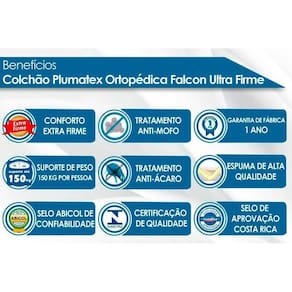 Colchão Solteiro Espuma Compact AG 65 / D28 / Falcon Ultra Firme Euro Pillow (88x188x20) - Plumatex