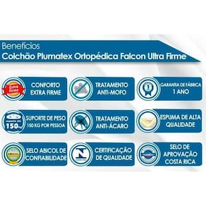 Abaixo segue os produtos do KIT: Conjunto Box Solteiro: Colchão Anatômico Plumatex D28 Falcon Ultra Firme + Base CRC Courano White (88x188)