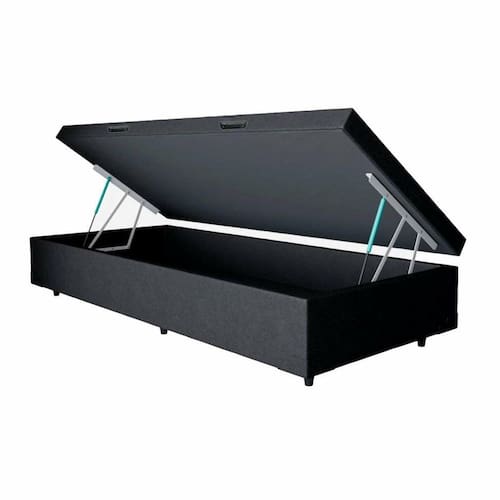 Cama box baú na medida de 88X188 marca S Colchões, trabalhada em alta qualidade, madeira seca, tecido corino e pistões a gás facilitando a abertura e fechamento do baú. O beneficio de ter uma cama baú é economizando espaço e dinheiro.